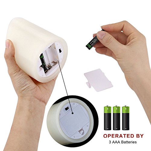 Product Description Real Flame-effect Candles These dancing candles are so realistic that practically indistinguishable from traditional burning candles. Flame simulation technology makes the candles flicker and sway like dancing with the wind, brings the most realistic experience to any room. Real Wax Elegant Design The candle shell is made from paraffin wax,however there is no burning wick, smoke or messy dripping wax. They are perfect for places like bookshelves and bedrooms. Smooth finish, classic ivory color and elegant design, use the Real Flame-effect Candles in locations where you would use real candles. 10 Key remote control, Smarter Candle Let the candles easy to operate, change what you want as the Manual. Extended Lighting Time Powered by 3AAA batteries (not included), the expected battery life is of approx. 150 hours (high-grade battery required). Package Include 5 x Dancing Flame LED Candles(Diameter:3.25" x H 4x H 4x H 4x H 6x H 6") 1 x 10 key remote control 1 x User Manual