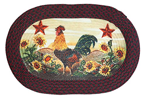 Studio : WalterDrake Publisher : WalterDrake Product Description Our exclusive Rooster in Sunflowers braided rug by OakRidgeTM adds farm-fresh charm and durability to your decor. Design features a rooster and sunflowers against a country hillside, complete with Americana-style stars! This durable kitchen rug withstands wear and tear like a champ, making it perfect for adding colorful, lasting style to any kitchen, entryway or heavy-traffic area. Indoor rug measures 29"Lx191/4"W. 70% polyester/30% polypropylene. Spot clean. Imported. 0