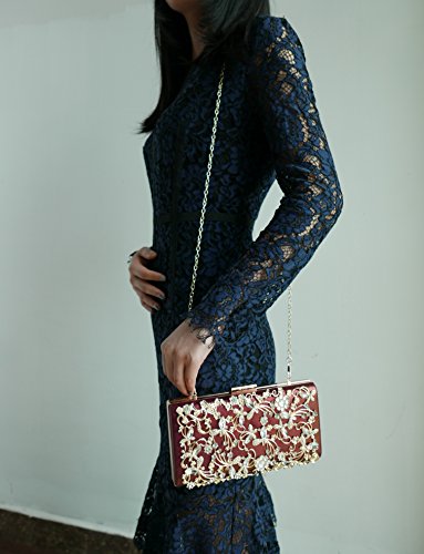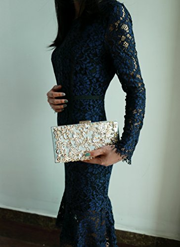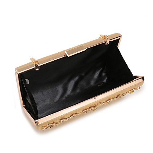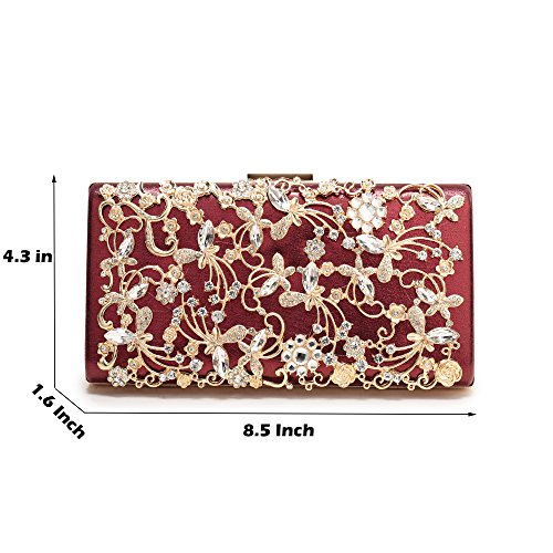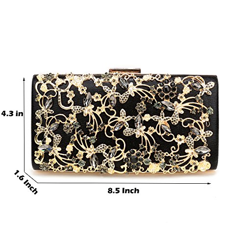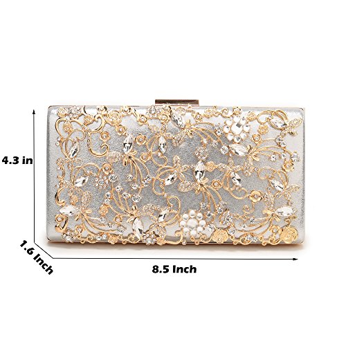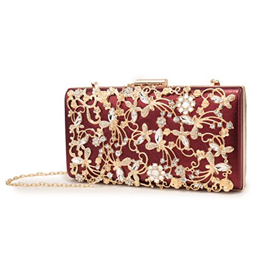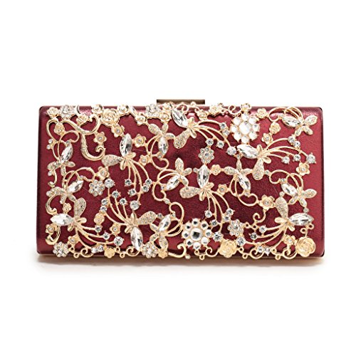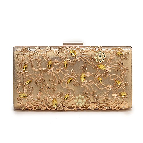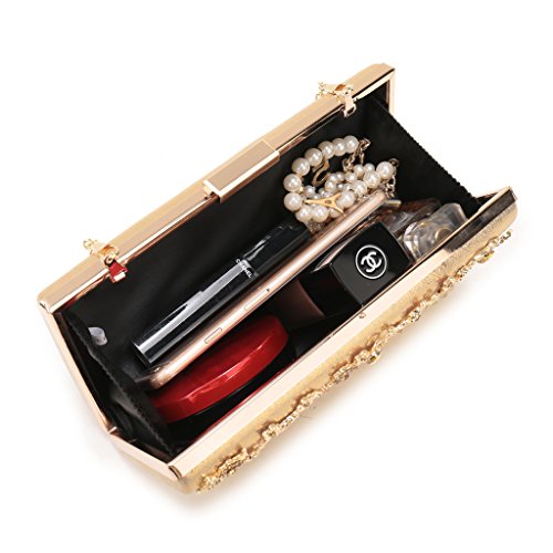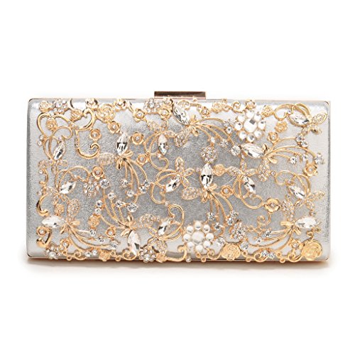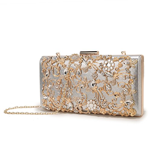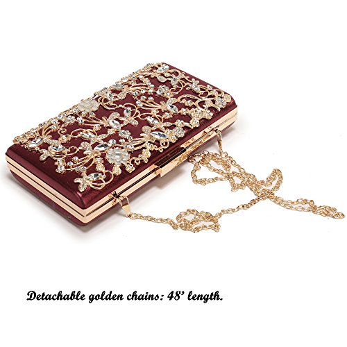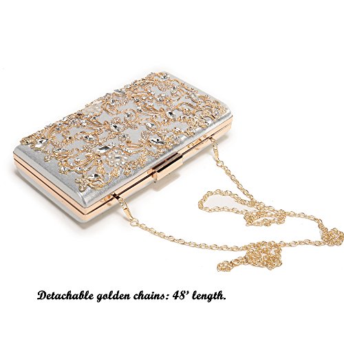 Product Description The glamorous evening party clutch features allover sparkling crystals on the front of this chic shaped clutch and has metal frame construction with clasp on the top. It features magnetic hasp closure and detachable chain which offers versatile carrying options as handbag, clutch, a shoulder bag or a cross-body bag. The crystal handbag is so royal, noble and brilliant that it will be a perfect status symbol and a bold gift for femininity.