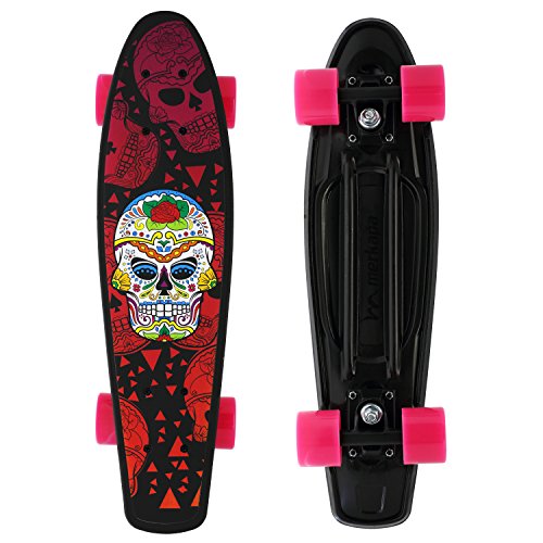 -. Brand : Merkapa -. Feature : Original Skull Style Design 22 inches Plastic Kids Skateboard, Fully Assembled, Designed for both beginners and advanced riders. / 22'' Long x 6'' Wide Deck with Colorful screen-P.R.Inted. Good anti-slip effect with the compact street board for more perfect riding. / High Quality 3" aluminum trucks for stability and quicker turning. / High Rebound PU wheels with ABEC-7 High Speed Bearing provide great roll and grip. / 30 Days No Question Asked Money Back Guarantee, just email us your order ID and then wait for the refund. Order with Confidence! -. IsAutographed : 0 -. IsMemorabilia : 0 -. Label : Merkapa -. Manufacturer : Merkapa -. MPN : SKB-03 -. PackageQuantity : 1 -. PartNumber : SKB-03 -. ProductGroup : Sports -. ProductTypeName : OUTDOOR_RECREATION_PRODUCT -. Publisher : Merkapa -. Size : 22 * 6 inches -. Studio : Merkapa -. Title : Merkapa Complete 22 inch Skull Style Skateboard for Kids, Beginners