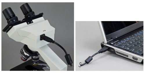High quality professional optical glass elements; 45 degree inclined 360 degree swivelling binocular head; Built-in 1.3MP USB Camera (Windows 7, 8, 10 & Mac Compatible) with Advanced Software for Windows