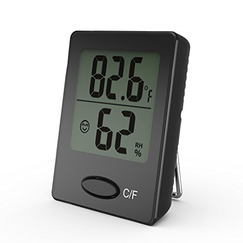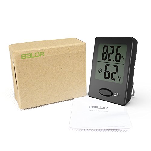 Baldr Mini digital thermometer with temperature and humidity display comfort level indication wall hanging or table stand (black)