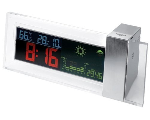 - Information: - displays time, date, temperature and weather forecast. Weather forecast with barometer reading. Bright white LED background light for night viewing. 3 AAA batteries required (Included)