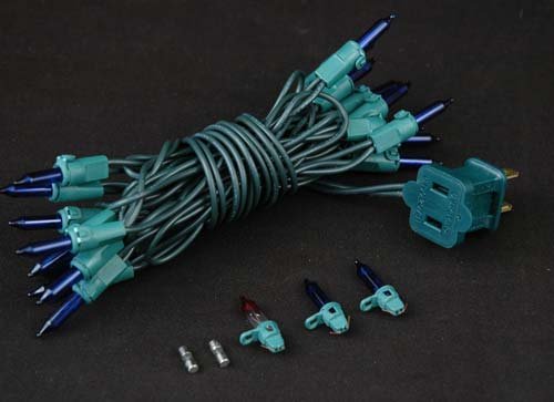 - Novelty Lights presents this commercial grade 22 gauge Green wire Christmas craft mini light set that has 20 lights spaced 4" apart and is 8 feet long. This craft mini light set is non-connectable end to end meaning that each string is made with only a male plug. Each set comes with 2 replacement bulbs, 1 flasher bulb, and extra 2 fuses.