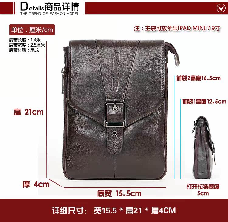 Style: Messenger BagBackpack way: Messenger ShoulderTexture: leatherLeather Material: first layer of leatherClosed way: zipperInternal structure: zipper pocket