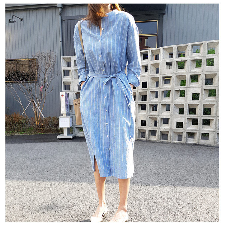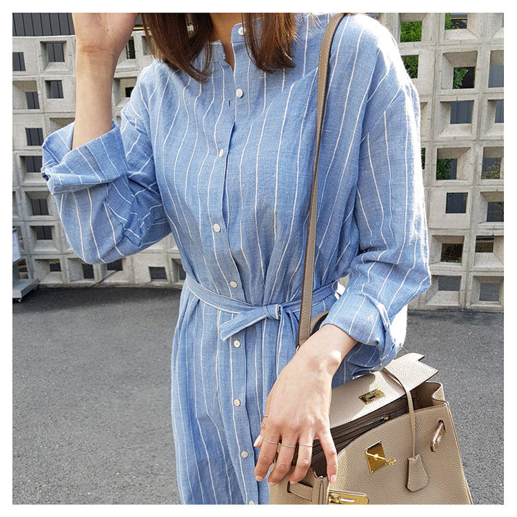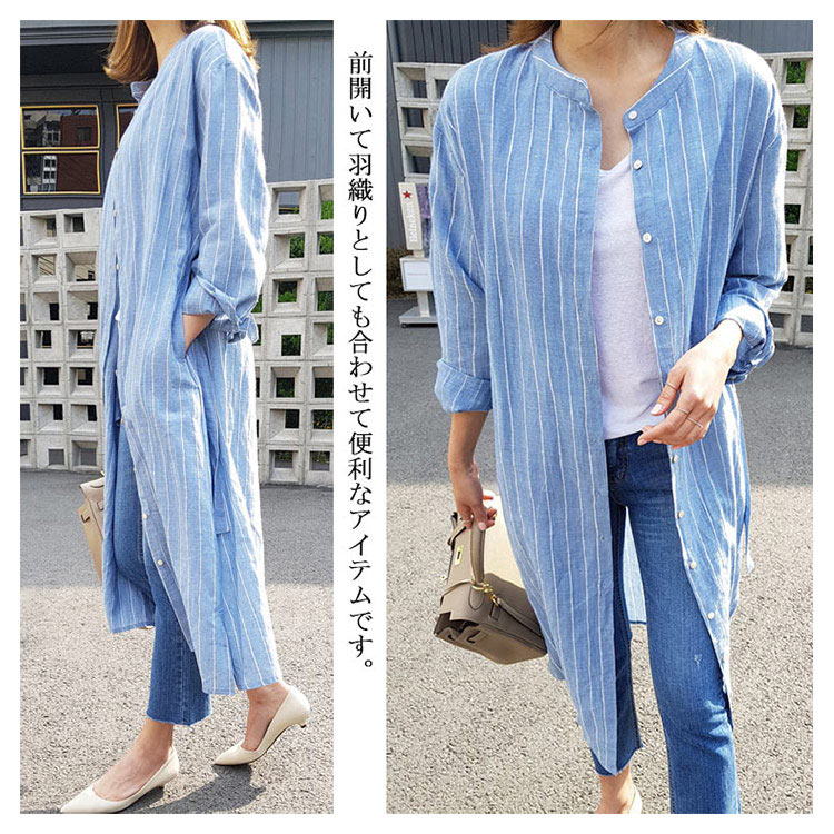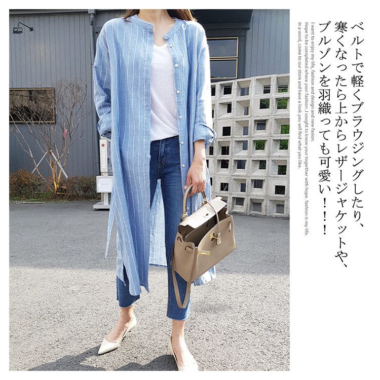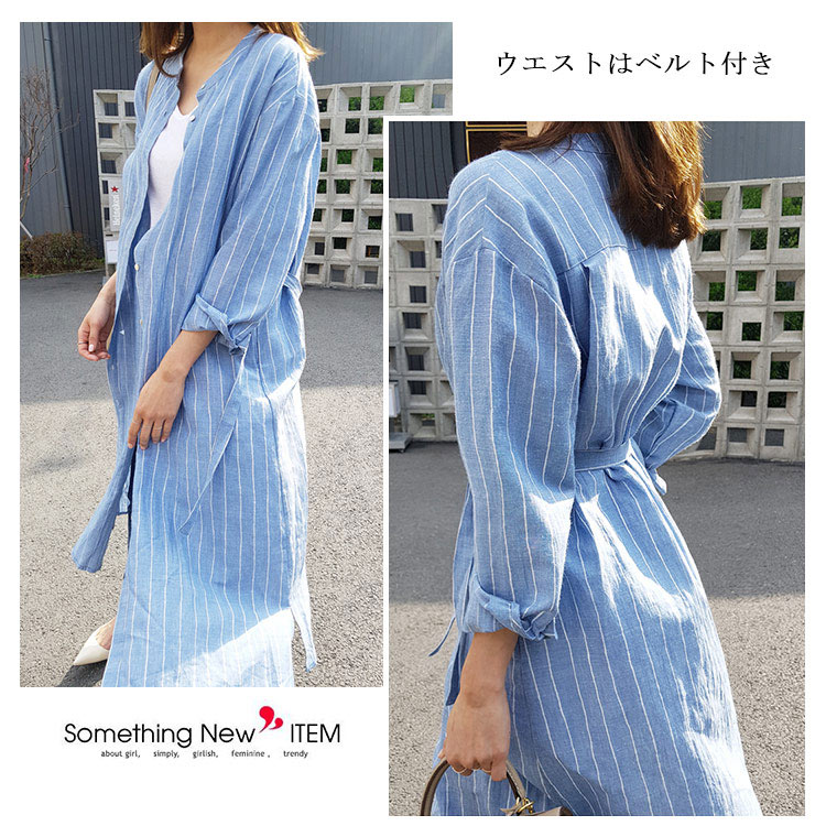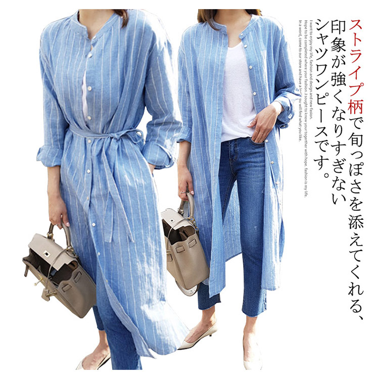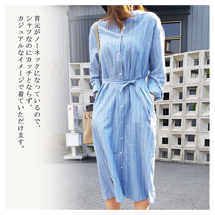 | ストライプ柄で旬っぽさを添えてくれる、印象が強くなりすぎないシャツワンピースです。ベルトで軽くブラウジングしたり、寒くなったら上からレザージャケットや、ブルゾンを羽織っても可愛い!!!首元がノーネックになっているので、シャツなのにカッチとならず、カジュアルなイメージで着ていただけます。前開いて羽織りとしても合わせて便利なアイテムです。 | |