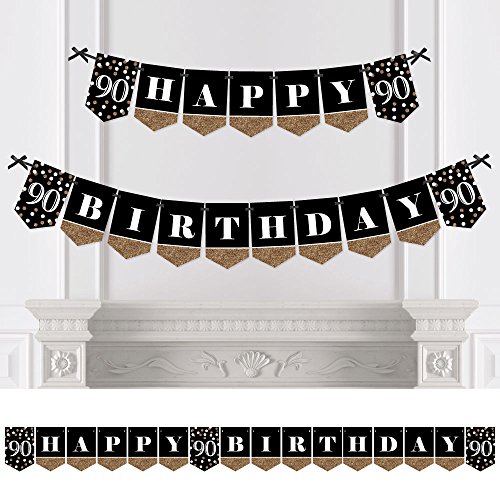 -. Feature : Adult 90th Birthday - Gold Bunting Banner is an impressive birthday decoration for your party. Ninetieth Birthday Bunting Banner Decoration Kit INCLUDES Adult 90th Birthday - Gold HAPPY BIRTHDAY letter pennants, black and gold themed pennants, satin ribbon and non-marking adhesives for hanging. / 90th Birthday Bunting Banners SIZE: Each pennant measures 8.5 inches high x 5.5 inches wide. Ribbon measures 24 feet long and 3/8 inch wide. / BIRTHDAY PARTY DECORATIONS: An Adult 90th Birthday - Gold Birthday Party Bunting Banner is an easy way to decorate for your party and bring your black and gold theme to life. Hang at the entrance of your birthday party, over the food table or candy buffet, at the gift table or behind the head table. / PREMIUM BIRTHDAY PARTY SUPPLIES: Adult 90th Birthday - Gold Bunting Banner is professionally P.R.Inted on sturdy cardstock paper. Each pennant is individually inspected then carefully packaged by hand. 90th birthday bunting banners require some easy assembly. Following the number sequence on the back of each pennant, simply string the included satin ribbon through the pennant slots. Create multiple rows by cutting the ribbon to your desired length or hang as one long banner. / MADE IN THE USA: Adult 90th Birthday - Gold Birthday Party Bunting Banner is designed and manufactured at our Wisconsin facility using materials that are Made in the USA. 90th Birthday Banners use a No-Mess Glitter P.R.Int: Our banners are designed with a P.R.Inted image of glitter, eliminating glitter flake while maximizing bling effect!