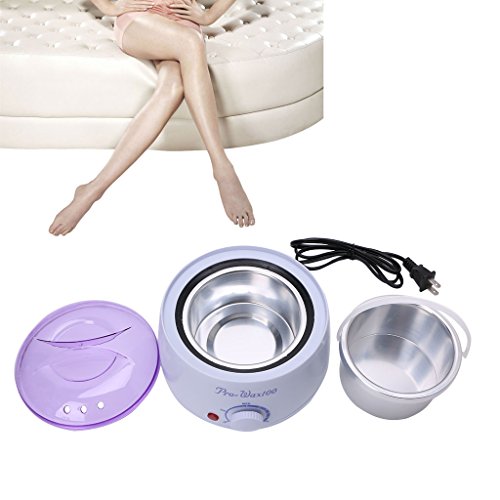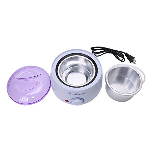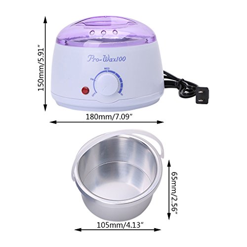 Function and Operation: (1) For the paraffin wax to make wax treatment. - Paraffin bath hot wax spa, makes your skin soft and helps heal chapped skin, good help for winter skin. - Suitable for paraffin care on face, hand, foot and body. - Be used to pamper, smooth and renew hand, feet and elbows with aromatherapy paraffin wax and gentle heat. (2) For the paraffin wax hand and feet care - Put paraffin piece into warmer, after it melt, please brush the paraffin on your hand. - Cover with disposable plastic gloves, and then wear heat preservation gloves. - After 20-30 minutes, remove paraffin, and apply cream on your hand. (3) For the depilation wax to make wax treatment - Put the depilatory wax into the pot and melt. - Depilation wax can not only increase the elasticity of the skin, leave your skin soft and smooth, but also help you to remove hair from arms, legs, under arms and bikini area. - The effect can last for at least one month. And the re-grow hair will become thinner and thinner! Safety Notice: - Please DO NOT test the temperature of the wax with your finger but use the tools, heated wax can be extremely hot, and may cause burns! - Please make sure that the WAX POT is DRY when you put the wax into it; otherwise it will get burned! Specifications: Epilator Machine External Size: (Dia×H) 18×15cm/7.09×5.91in Aluminium Pot Size: (Dia×H) 10.5×6.5cm/4.13×2.56in Volatage: US 110V Power: 100W Volume: 500ml Plug Type: US plug 0