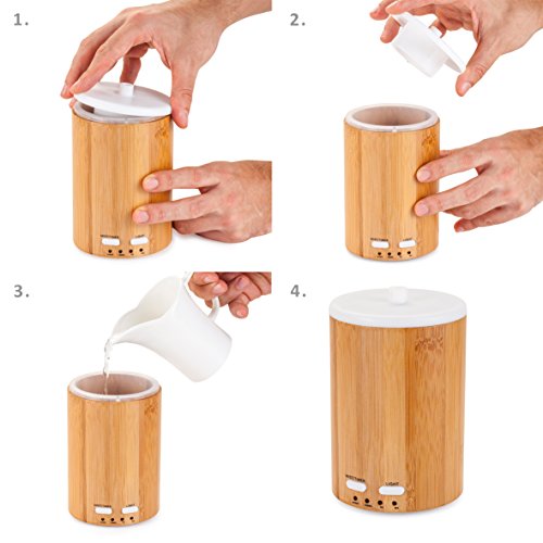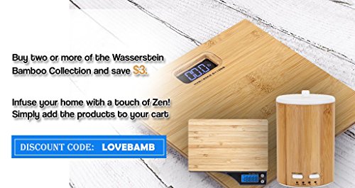 -. Feature : ✔ BEAUTIFUL FORM & MULTI-FUNCTION - Beautifully designed humidifier made of real bamboo that fits in perfectly with almost any interior; The item sprays a strong cold mist that noticeably increases the air quality, 150 ml water capacity, ultrasonic vibrations turn the water and oil into an ultra-fine scented mist that refreshes rooms up to 269 sq. ft. Runs continuously for 8 hours; Air Purifier with 4 in 1 functions: aromatherapy diffuser, Humidifier, air purifier and night light / ✔ PROGRAMS & LIGHTS - The humidifier offers 4 settings: continuous mist, 10 seconds on-off, 1-hour timer, 2-hour timer and various changing and constant light settings; 150ml water capacity that can continue use up to 5 hours with low mist. When time is up or there is no water, it will turn off automatically / ✔ BUY RISK FREE - If you are unhappy with your Wasserstein Bamboo Humidifier, we'll get it replaced or issue you a full refund, no questions, no charge, no kidding / ✔ WASSERSTEIN SAVINGS - Realize huge savings when you buy your Wasserstein Humidifier together with Wasserstein Aromatherapy oils - please refer to the Special Offers and Product Promotions sections below for more information / What is included in the package: Wasserstein Bamboo Humidifier, Charging Cable, Manual, Wasserstein Warranty