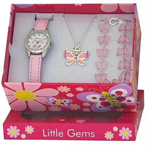 Ravel Little Gems Watch With Matching Butterfly Necklace And Bracelet In A Pretty Presentation Box. The Perfect Gift For Little Girls Everywhere.Little Gems Watch, With Matching Butterfly Necklace And Bracelet. Presented In A Beautiful Gift Box This Makes A Fantastic Gift. Important Notice Regarding Our Watch Returns Policy: Before Purchasing Any Watch, Please Note Our Water Resistance Guideline Information Which Is Clearly Stated In Our Returns Policy. We Reserve The Rights To Refuse A Return On Any Watch If You Have Not Read And Followed These Guidelines.