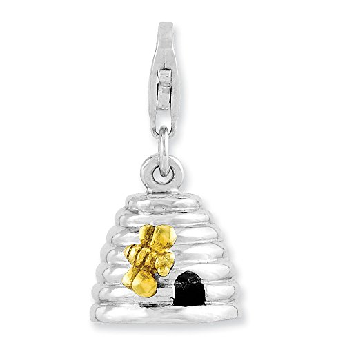 -. Title : Sterling Silver Rhodium-plated & Gold Plated 3-D Beehive w/Lobster Clasp Ch