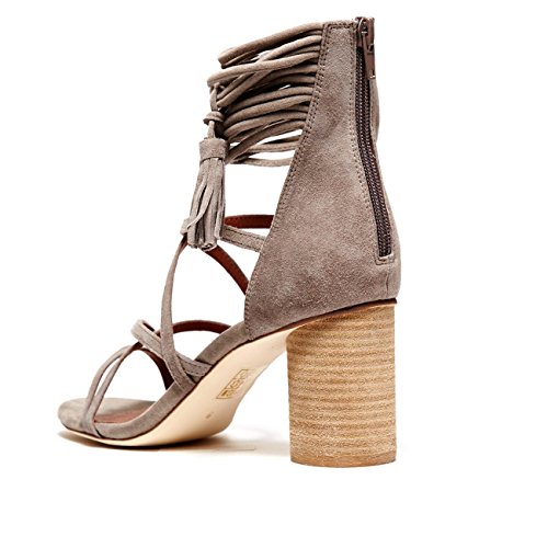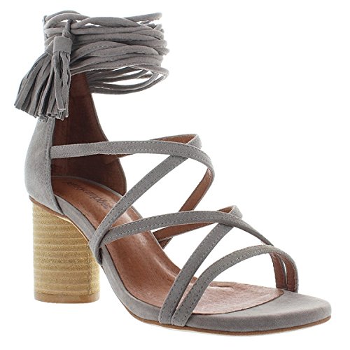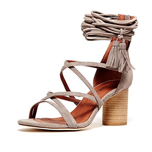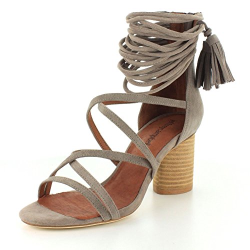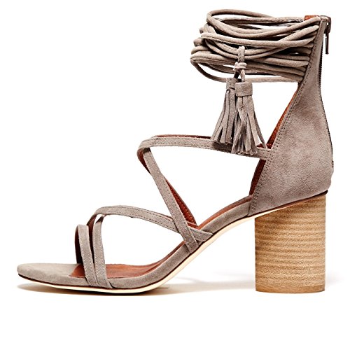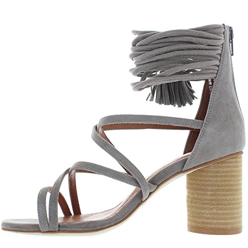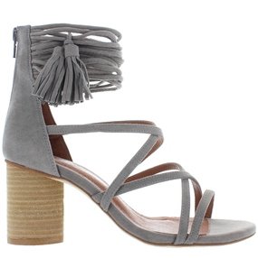 Product DescriptionDelicate straps accented with tassels form the ankle cuff on these smooth suede Jeffrey Campbell sandals. Exposed back zip. Stacked, round heel. Leather sole.0