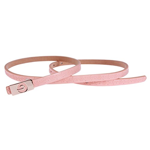 -. Binding : Apparel -. Brand : Damara -. ClothingSize : One size -. Department : womens -. Feature : This glamorous belt is made of premium PU. / This belt has stylish press buckle to fasten. / The metal buckle is in letter "G" P.R.Int design. / The belt is covered with delicate embossed flowers. The length of the belt is adjustable with 7 holes. / Belt measurement: full length 104cm; width 1cm; buckle length 3cm; buckle width 1.3cm. -. ProductGroup : Apparel -. ProductTypeName : ACCESSORY -. Size : One Size -. Title : Damara Womens Flower Embossed Buckle Waist Belt