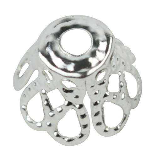 Beading Station 100-Piece Filigree Flower Cup Shape Bead Caps for Jewelry Making, 7mm, Silver