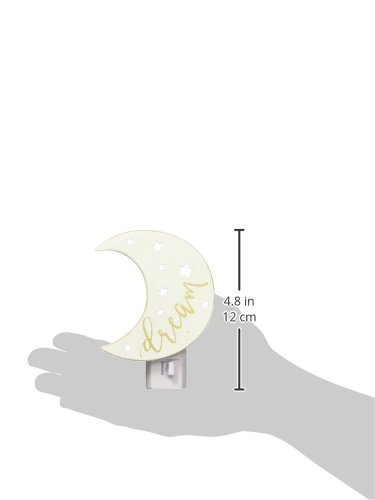 2-piece set. Distressed wood moon night light features cut out details and printed metallic gold "dream" sentiment. Arrives gift boxed with Kraft paper shreds. Light bulb included.Feature
