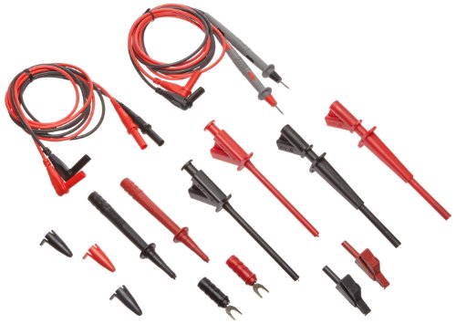 - Feature : Test leads with a right angle banana plug are ideal for use with hand held digital multimeter. / Flexible test leads feature high strand count silicone wire for extreme flexibility and high temperature resistance. / Wear indication with double insulated (dual extruded) silicone leads shows white inner layer for increased safety. / Banana plugs are molded directly to the wire for superior pull strength. / Banana tip probe body, alligator, spade lug and test clips attaches directly to test leads for testing versatility.