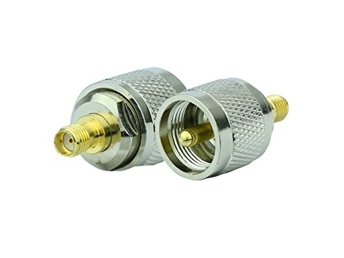 -. Feature : 1.Straight Adapter UHF male ( thick pin in center,thread inside) to SMA Female ( hole in center,thread outside) RF Coaxial Connector Adapter / 2.Impedance :50 ohm / 3.Material: Nickel plated Brass;silver tone adapter with great electrical conductivity and superior performance / 4.Commercial Grade Connector / 5.Package Content : 2 x UHF male to SMA Female Adapters