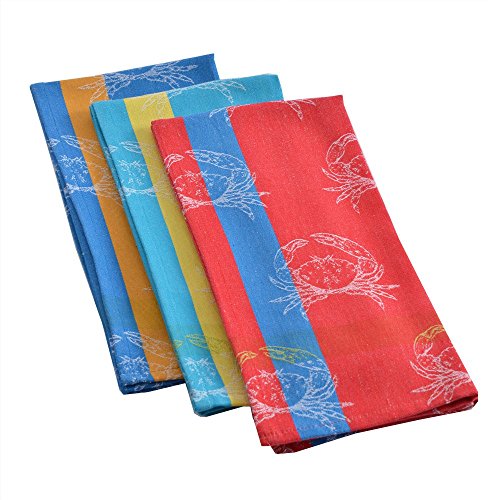 Mahogany "Crab" Jacquard Kitchen Towel, 100Percent Cotton, Set of 3, Each 18-Inch by 28-Inch