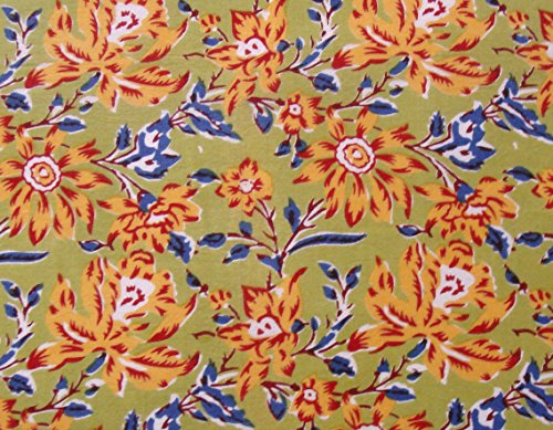 Olive Green Block Print Indian Cotton Fabric for Craft Sewing Dresses Blouses Pouches Bags 1 Yard by Craftbot