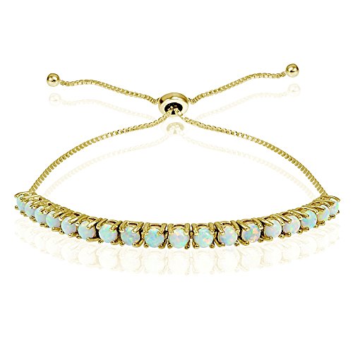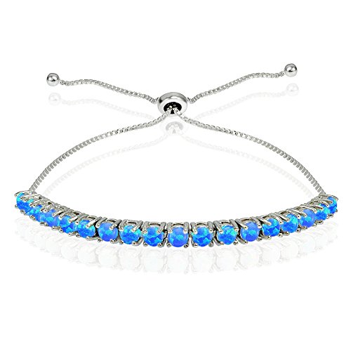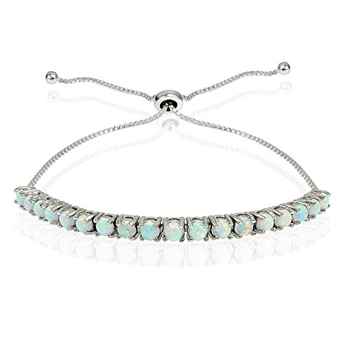 This attractive bracelet for women and girls showcases prong set 3mm created opal gemstones. The bracelet adjusts from 3 inches up to 10 inches long. The bracelet is crafted of fine sterling silver, and is nickel & tarnish free.