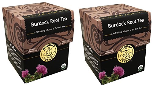 -. Feature : Buddha Teas Organic Burdock Root Tea 18 Tea Bags (Pack of 2) / Decaf Burdock Root Herbal Tea / Unbleached Tea Bags, 100% Kosher, Non-GMO, No Artificial Colors, Flavors or Preservatives / USDA Organic Burdock Root Tea