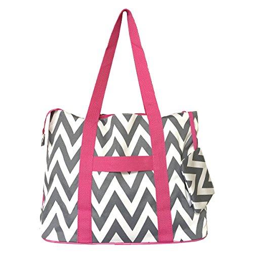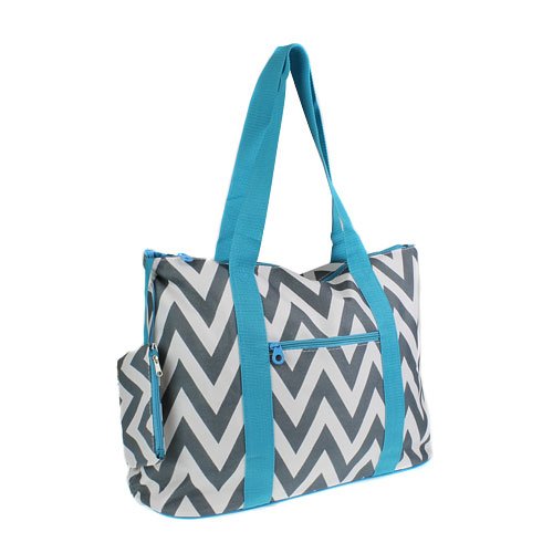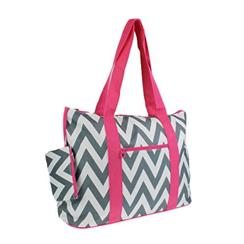-. Brand : Ever Moda -. Department : womens -. Feature : 600 Denier Polyester - Rear and inside zipper pockets for storage convenience / Matching zipper cosmetic coin purse inside that measures 6" x 5". / Measures 20"W_15"H_7"D / Zipper main closure for added peace of mind / Metal feet allows stability to bag when setting down and provides bag floor not to touch floor directly to get dirty -. ProductGroup : Apparel -. ProductTypeName : LAGE -. Title : 20"Chevron Prints Large Roomy Tote Beach Bag W/ Attached Coin Purse EM4418CVP