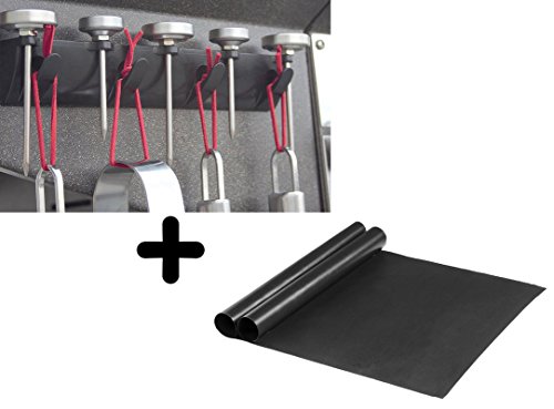 FEROS KIT – (3 items!) Magnetic BBQ Grill Tool Accessory Holder + 2 Non-stick BPA-free BBQ Grill & Baking Mats - FDA-Approved, Reusable and Easy to Clean