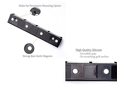 MAGNETIC - Tool holder installs in seconds. Strong rare earth magnets provide incredible grip. IMPORTANT: Magnets (no matter how strong) are not as effective on Stainless Steel or Powder Coated Steel. If you have a grill of this material you are better off using the permanent mounting option on the BACK of the Tool Holder