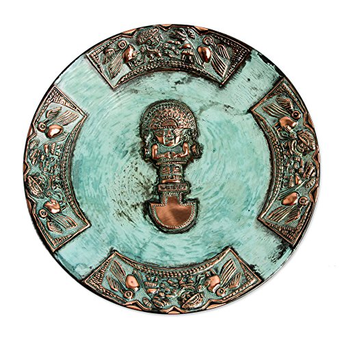 NOVICA Handmade Archaeological Bronze and Copper Decorative Wall Plate, Metallic and Green 'Ceremonial Blade'