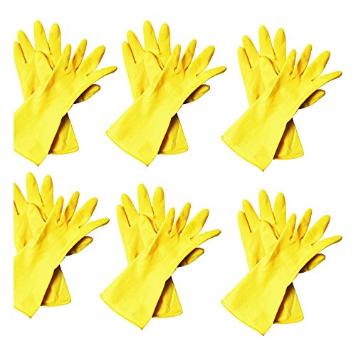 Minel Heavy Duty Disposable Yellow Rubber Latex Kitchen & Household Cleaning Gloves, Powder-Free, 6 Pairs Size Medium
