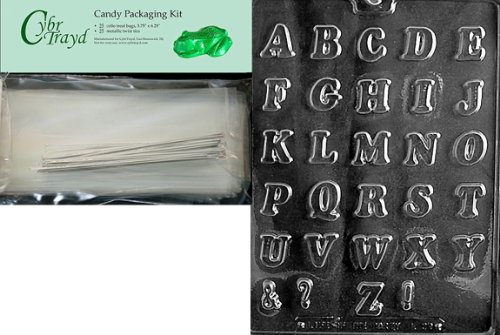 Cybrtrayd Small Letters A-Z and Numbers Chocolate Candy Mold, Includes 25 Silver Twist Ties