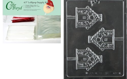 Cybrtrayd 45stK25R-C463 Gingerbread House Lolly Christmas Chocolate Mold with Lollipop Kit