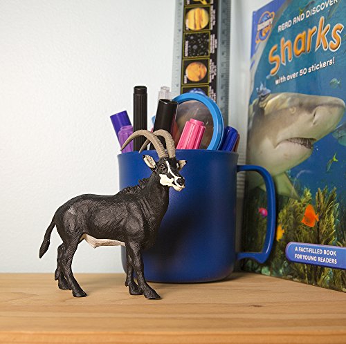 -. Feature : IMPRESSIVE HORNS - The sable antelope is a species of antelope that inhabits the more wooded areas of east and southern Africa. Relatively short with stocky necks, sable antelopes are best identified by their impressive ringed horns that curve towards the back of their heads. / EXTREMELY EFFECTIVE - Unlike many other antelopes and members of the Bovidae family, sable antelopes choose to fight predators that confront them using their sharp and powerful horns. This method of self-defense is so effective that sable antelopes have been known to maim and even kill large cats, including lions. / MADE WITH INDUSTRY-LEADING STANDARDS - Like all Safari Ltd products, this figurine has been individually hand painted, features quality construction from phthalate and lead-free materials, and includes an educational hangtag in 5 languages. / REALISTIC APPEARANCE FOR MULTIPLE USES - Realistic, educational, and fun, this figurine is suitable for a range of interests, including collectors, enthusiasts, teachers, and kids. Admire it on a shelf, use it in the classroom, or simply enjoy playing with it. / PRODUCT SPECIFICATIONS - 4.5 inches long and 4.25 inches wide, this figurine's dimensions are both about an inch larger than the length of a credit card. You can tell this sable antelope is fairly old due to its dark black coat and white facial markings, as calves are born with reddish-brown fur and no facial patterns.