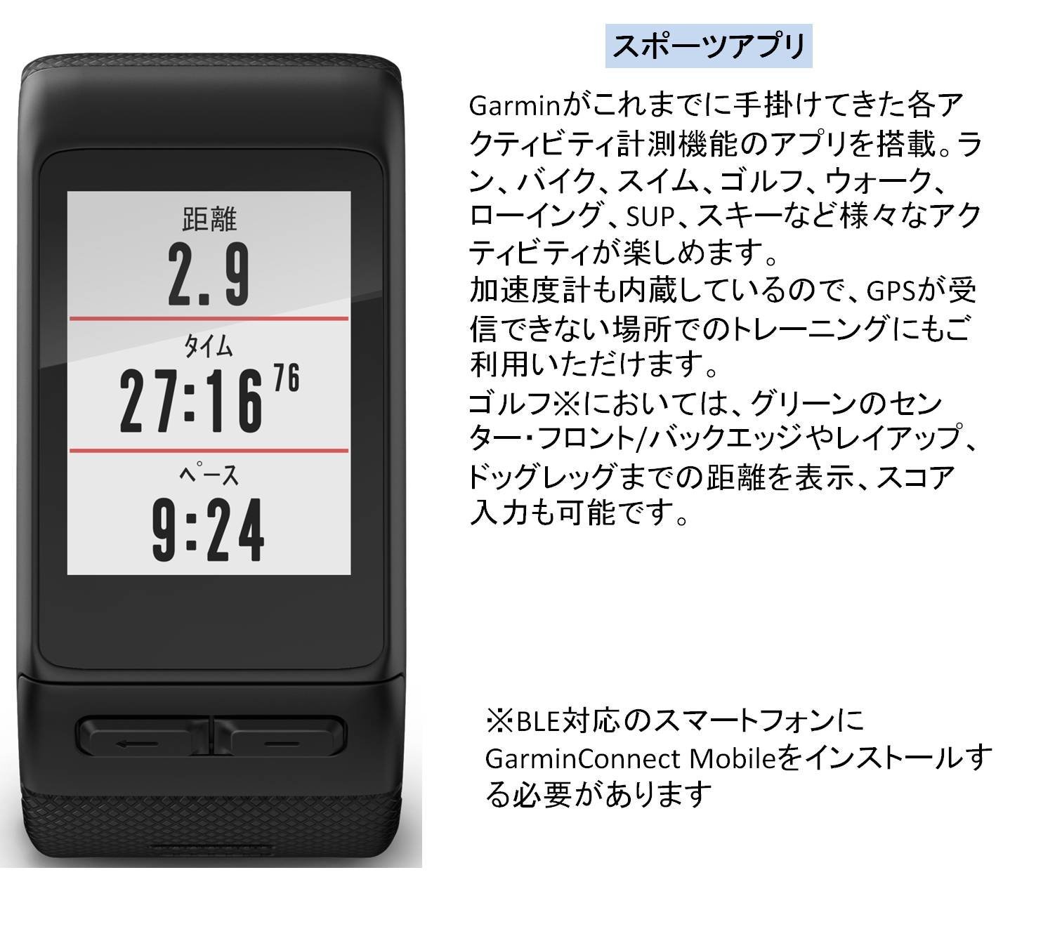 Built-in sports applications include GPS compatible running, cycling, swimming, etc. No need to connect with smartphones