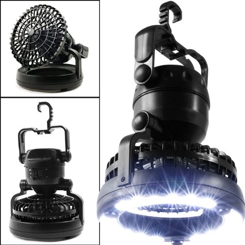 - Feature : 2 in 1 Tent Camping Ceiling Fan LED Light Combo - 18 Bright LEDs! / This amazing Deluxe Camping Combo LED Lantern and Fan will keep you cool and comfortable inside or outside of your tent and its 18 powerful LED bulbs will illuminate the night. / Dimensions: 6.25 x 6.25 x 7.25 inches / Weather resistant - Requires 2 D Batteries (Not Included) / Includes retail packaging & intructions