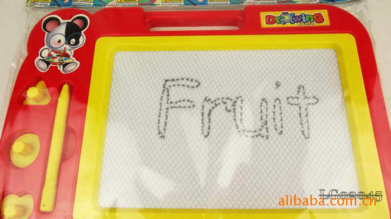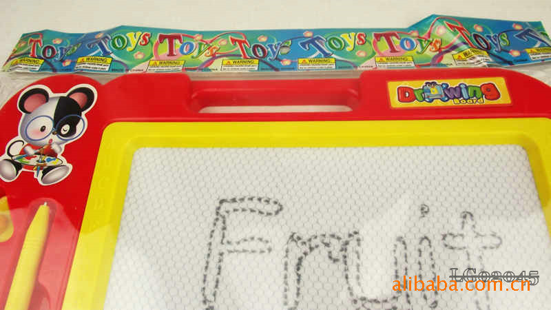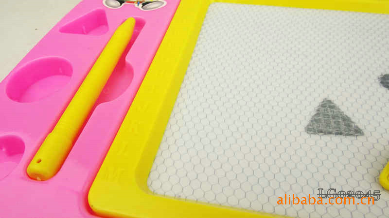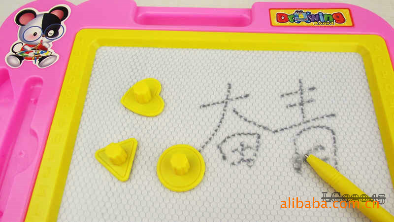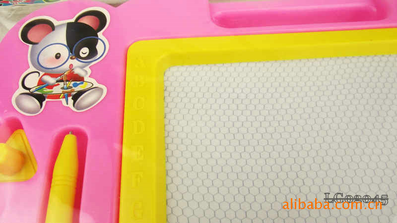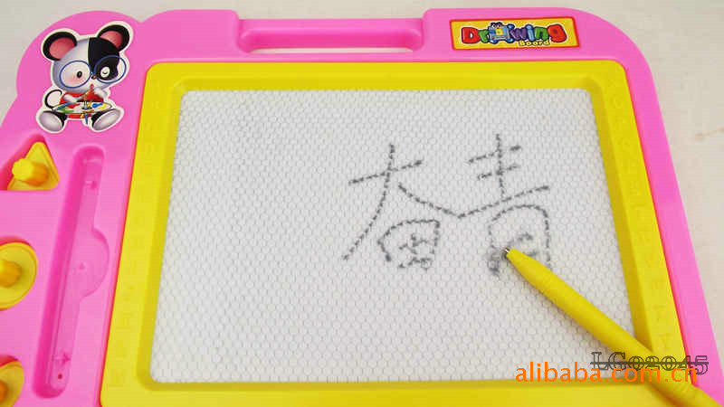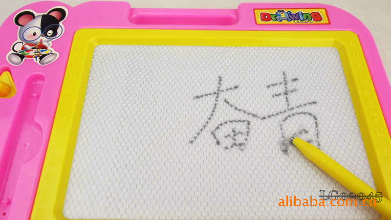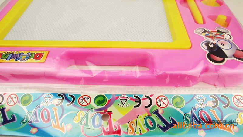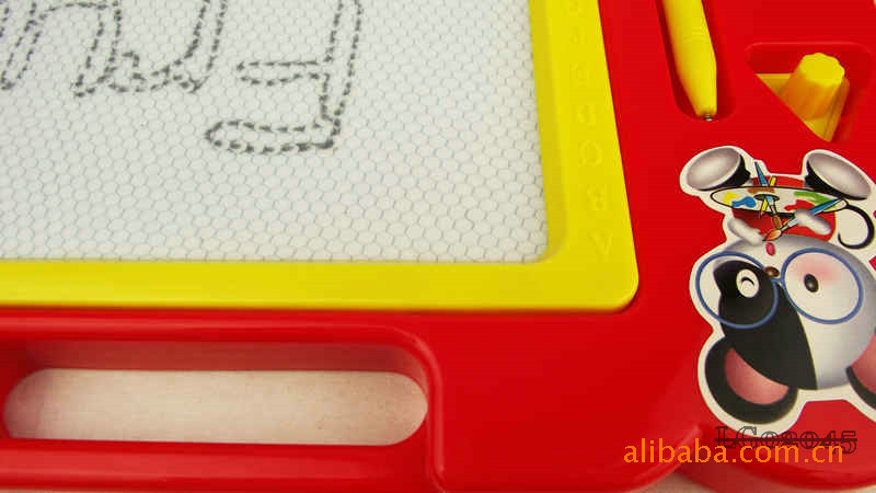The whole board periphery is high grade plastic, Sketchpad specially designed upper hand can let the baby will this lovely Sketchpad to carry anywhere, convenient oh, Sketchpad left is the grooves are placed magnetic brush and a magnetic seal, the overall design is very user-friendly.