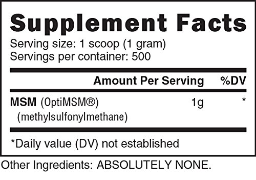 MSM is best known for aiding in joint health but has also been shown to support liver detoxification and provide many other health benefits.;Vegetarian, OU Kosher, Gluten/Dairy Free, Hypoallergenic, NON GMO, BSE/TSE Free.;Made in the USA to Strict FDA Standards in our own cGMP Certified Laboratory.;Independent Lab Tested in insure 100% Label Claim and Purity.;Try NutraBio products risk-free! Backed by our 100% Money Back Guarantee!