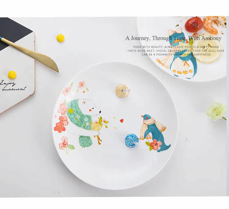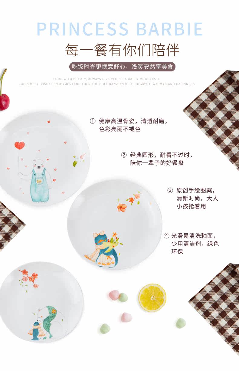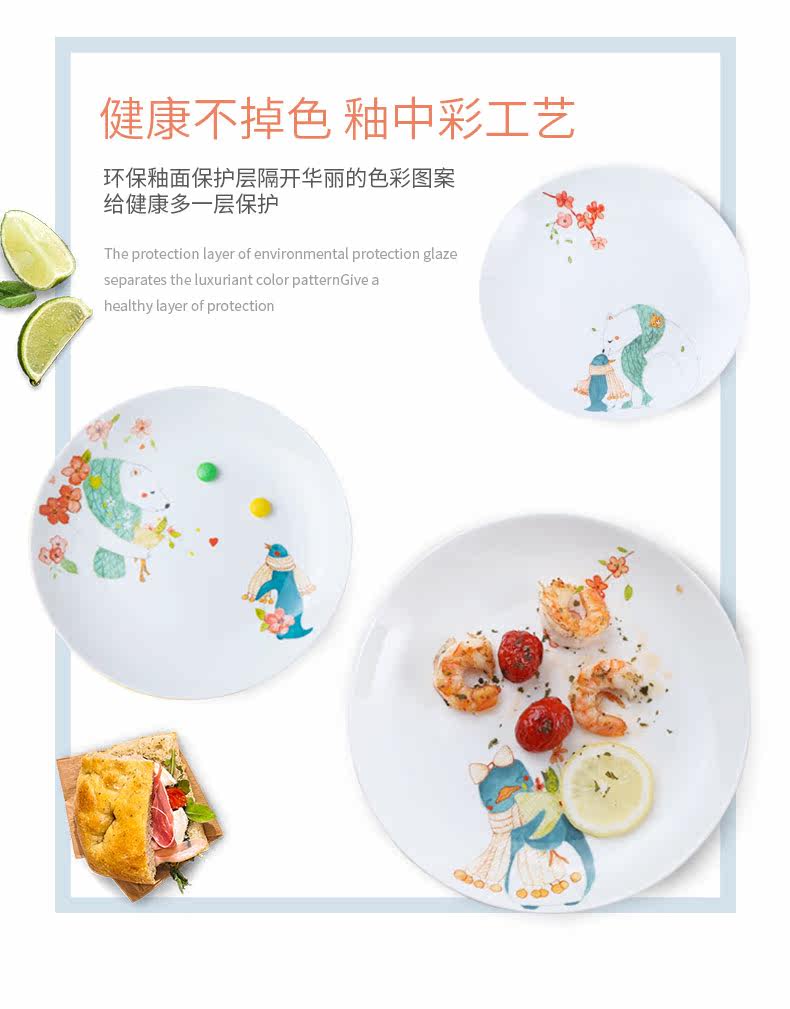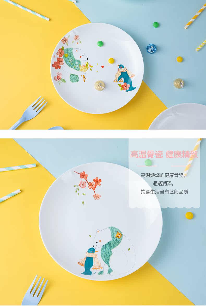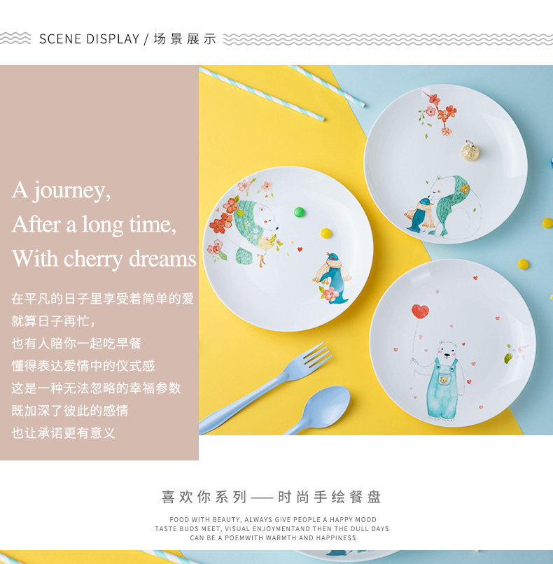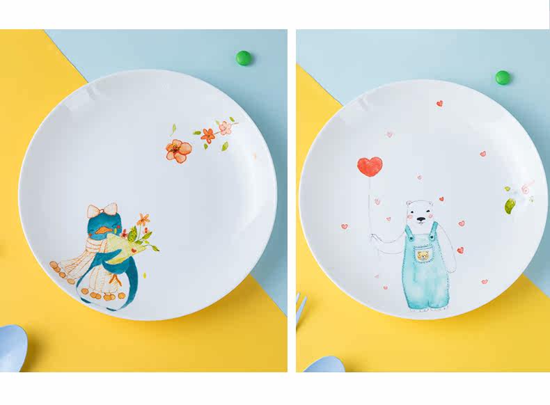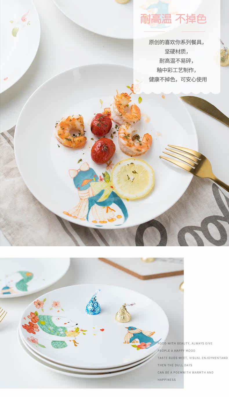 卡通创意家居可爱盘子套装陶瓷组合景德镇釉中彩手绘菜盘