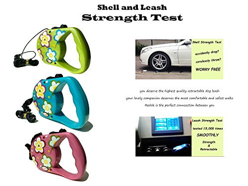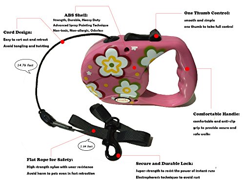 Reelok Pink Beautiful Flower Patterns Automatic Retractable Durable Heavy Duty High Quality Super Strength Dog Pet Cord Leash Safe Walk 16 feet 5 M