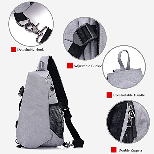 Studio : Lixada Publisher : Lixada Binding : Misc. Product Description This chest bag is perfect for day trips, vocation, travel, day hikes, school, camping and shopping. ? Features: DURABLE: Tear resistant Polyester, sturdy metal zips and solid buckles, good construction guarantees its durability. BIG SPACE: Large capacity to hold your tablet, power bank, notebook, small camera, books, phone, keys, ect, perfect for outdoor activities. CHARGING PORT EARPHONE PORT: External USB port earphone port, you can enjoy music and charge the phone easily and freely. ANTI-THEFT: Side opening double zippers design is great for anti-theft. MULTI CARRYING WAYS: shoulder bag / handbag / chest bag.