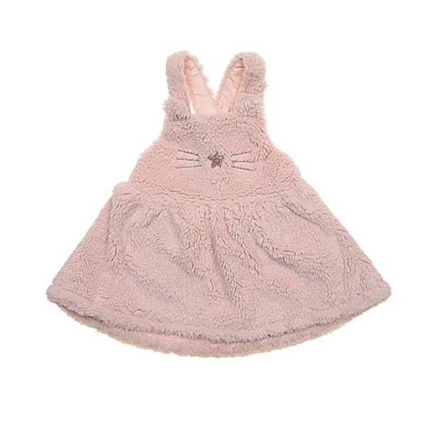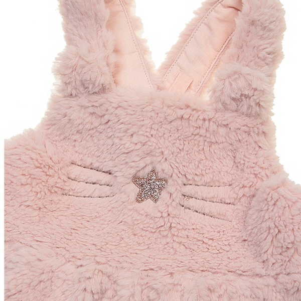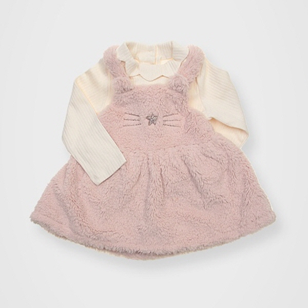 멜빵스커트 디자인의 퍼원피스는 고양이 자수포인트를 주어
