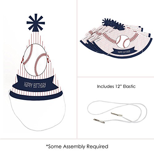 -. Title : Batter Up - Baseball - Cone Happy Birthday Party Hats for Kids and Adults - Set of 8 (Standard Size)