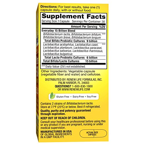 15 BILLION: Designed with 15 billion live cultures from 10 probiotic strains, each dairy and gluten free, vegetable capsule is formulated for targeted delivery
