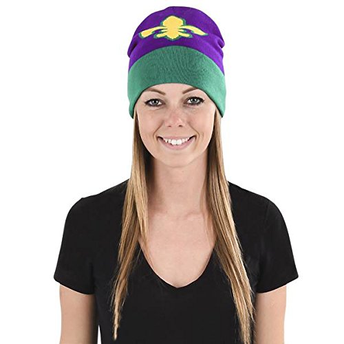 -. Feature : All the Mardi Gras Colors, Gold, green, and purple / Fleur de lis icon, similar to New Orleans Saints logo / Knit beanie hat / Great Mardi Gras Party Favor and Decoration,