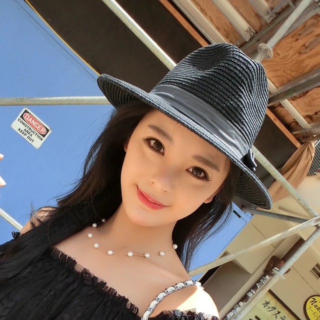 | [해외]여름 플로피 밀짚 해변 태양 모자, 클래식 챙이 넓은 파나마 모자, 챙 paja는, chapeau 팜므 paille 죽어 야지, chapeu feminino |