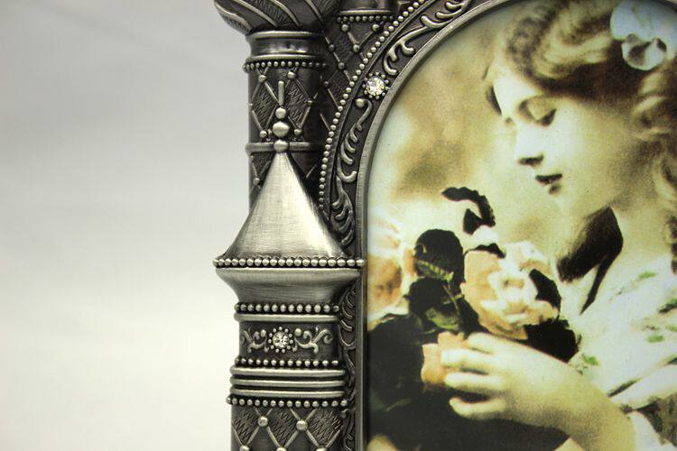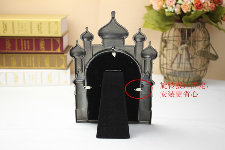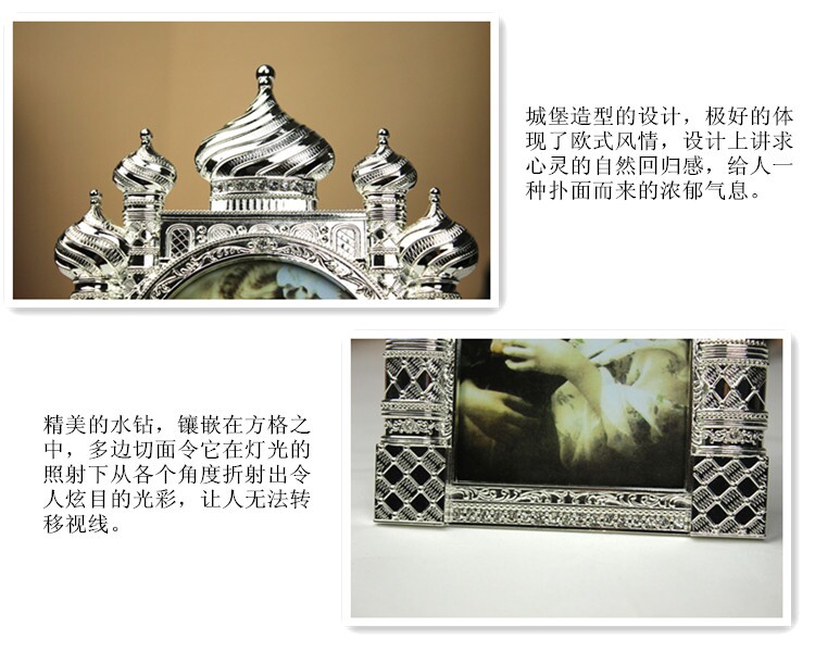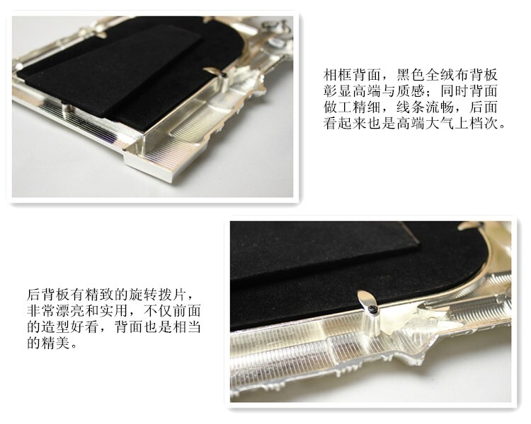 Size: height of about 24cm, width of 15.5cm, 6-inch photo frame can be put vertical version of a photoMaterial: tin alloy casing, acrylic mirror, velvet backplane