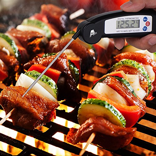 Instant Read Meat Thermometer AoLiPlus Super Fast Digital Electronic Food Thermometer Cooking Thermometer with Collapsible Internal Probe for Grill Cooking BBQ Meat Kitchen Battery (included)
