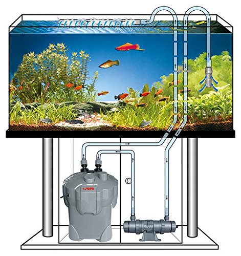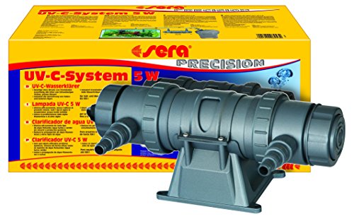 Leistungsstarker, dabei äußerst sparsamer UV-C- Wasserklärer mit Multifunktionsanschluss für Filter und Pumpen. Der sera UV-C-Wasserklärer kann in Verbindung mit einer Ströumungspumpe wie der sera P 1200 oder einem Außenfilter wie dem sera fil bioactive 130 bzw. 250 verwendet werden. Die Förderleistung der Filterpumpe sollte etwa ein Beckenvolumen pro Stunde betragen. Der UV-C-Wasserklärer kann nicht ohne Pumpe betrieben werden.