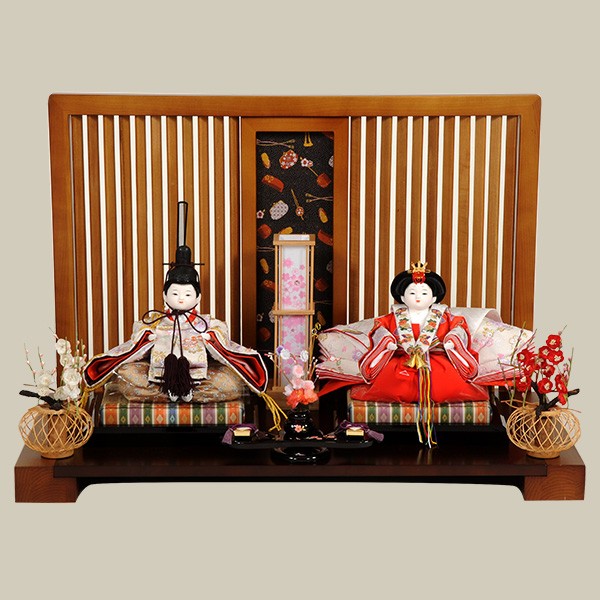 ・台座・屏風等には落ち着いた色目の雛人形セット。