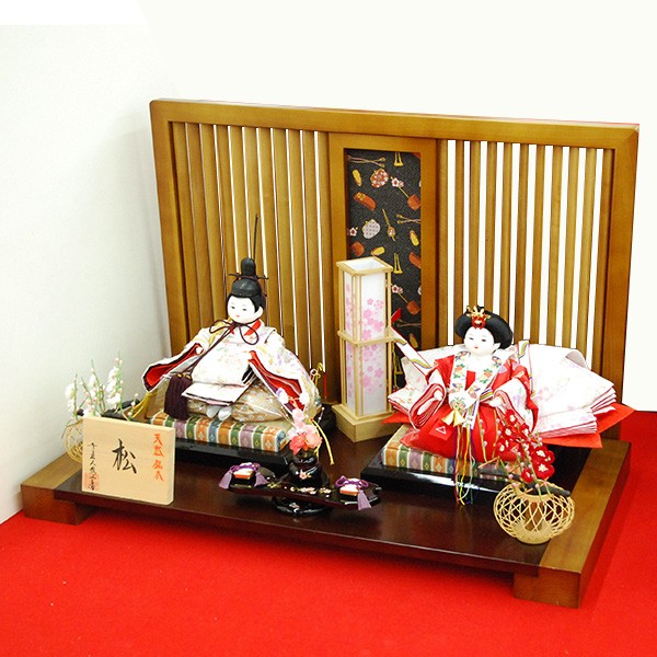 ・和洋室に合う高級自然木使用の台座の雛人形飾り